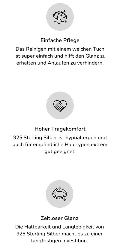 Special features of 925 sterling silver are its resistance to tarnishing and its timeless lustre, which remains intact even after many years.